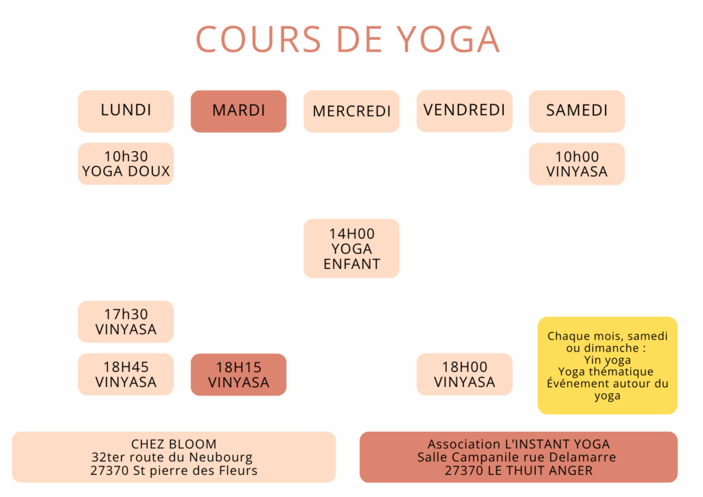 Cours de yoga dans l’Eure, à St Pierre des Fleurs.